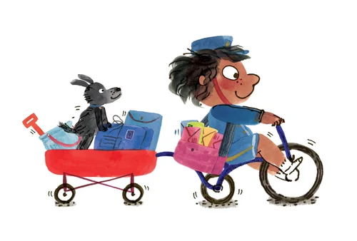 In mixed-media illustrations replete with soft washes of desaturated color, Ismail locates introspective moments in the text and amplifies them, using them as jumping-off points for scenes depicting archetypal imagery of youth: exuberant dancing and pretend play, exploration in nature, a skinned knee, the peak of a jump-rope jump, hiding in a cardboard box. The treatment of these scenes—busy, but uncluttered; energetic, but never distracting—evokes both the wildness and calm of childhood. -Jonah Dragan